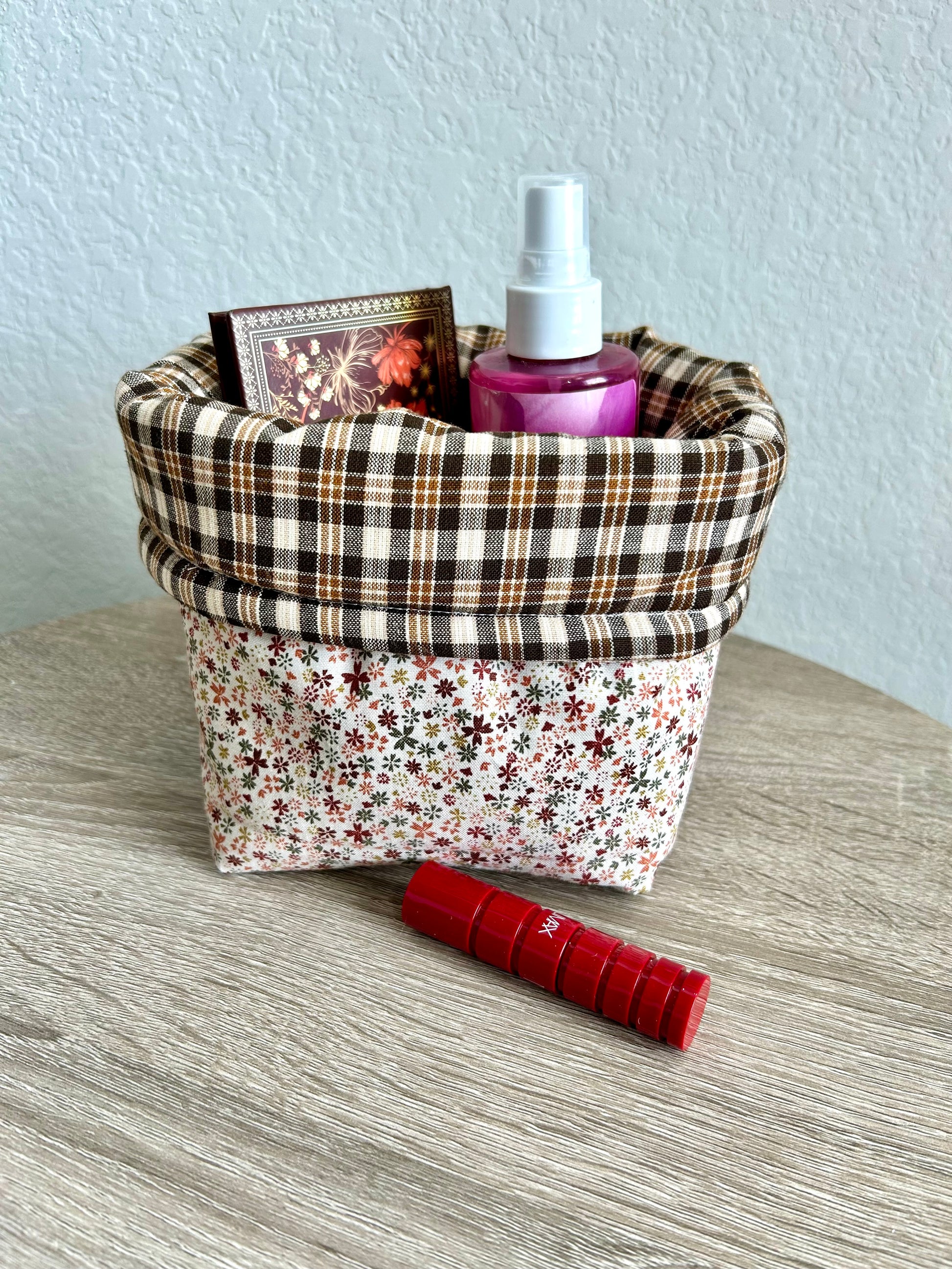 This soft plushy fully reversible vanity bucket is perfect for organizing any space . Fold it down as little or as much as you like, and use it on your vanity, desk, dorm, bedroom, or kitchen for beauty items, snacks, or everyday essentials.