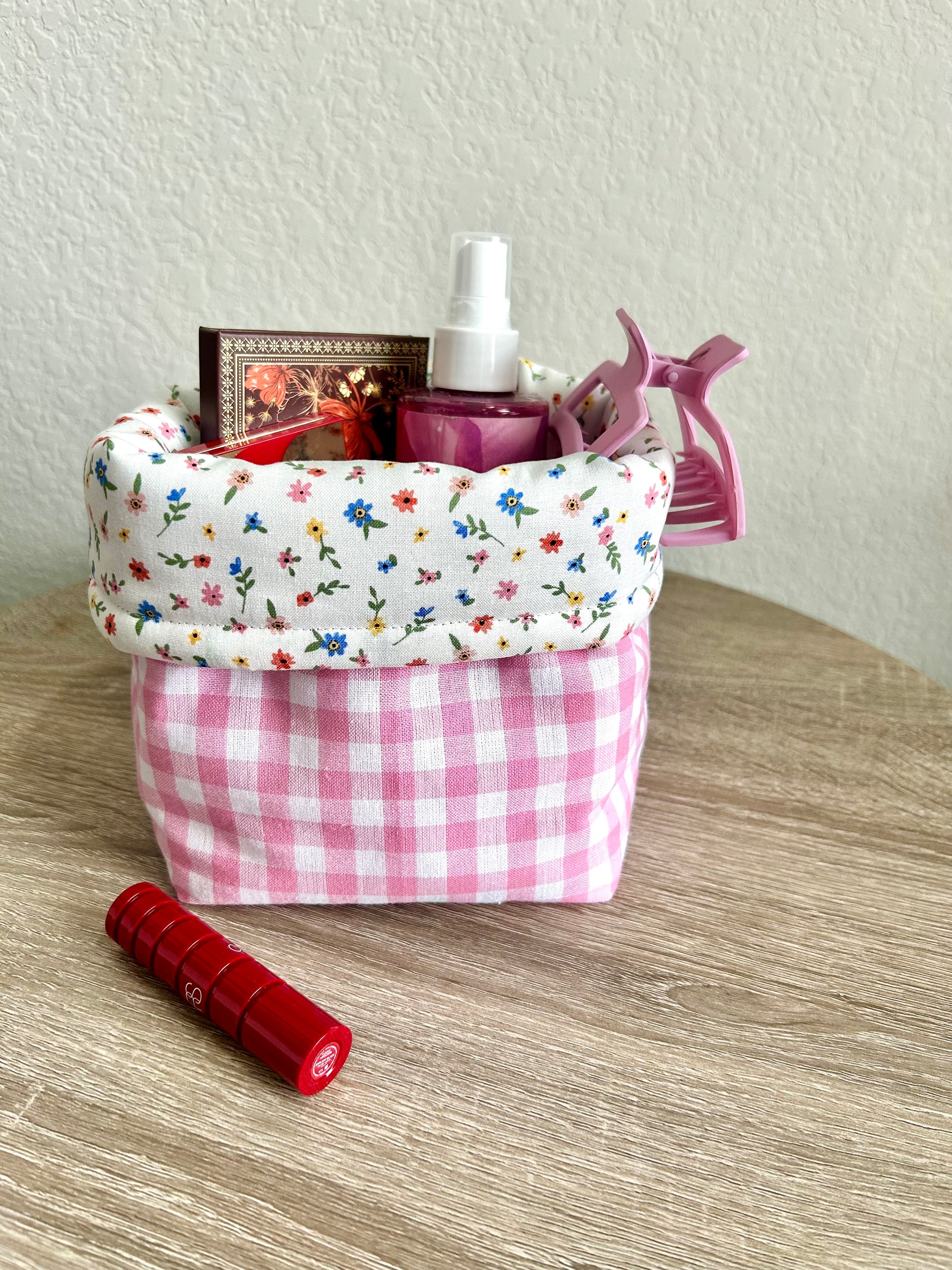 This soft plushy fully reversible vanity bucket is perfect for organizing any space . Fold it down as little or as much as you like, and use it on your vanity, desk, dorm, bedroom, or kitchen for beauty items, snacks, or everyday essentials.